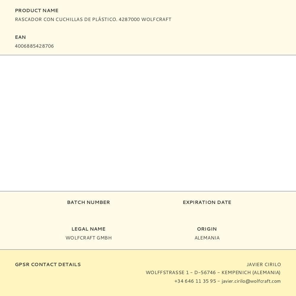 Rascador Con Cuchillas De Plástico. Para Superficies Delicadas Como Madera Blanda O La Pintura De Automóvil. Equipado Con 2 Cuchillas De Plástico En Dos Grados De Dureza: Dura Y Media. Cambio De Cuchillas Sin Herramientas