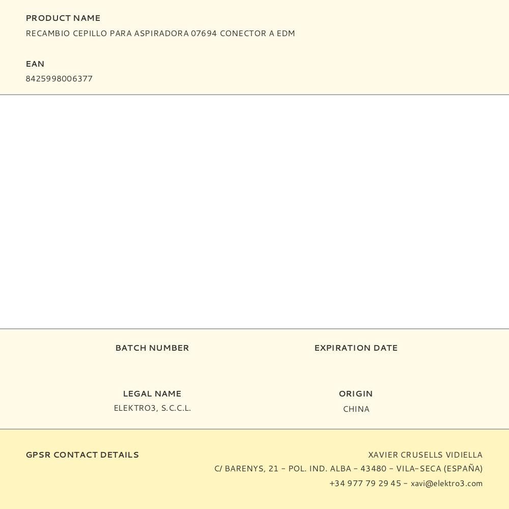 Recambio Cepillo Para Aspiradora 07694 Conector A Edm
