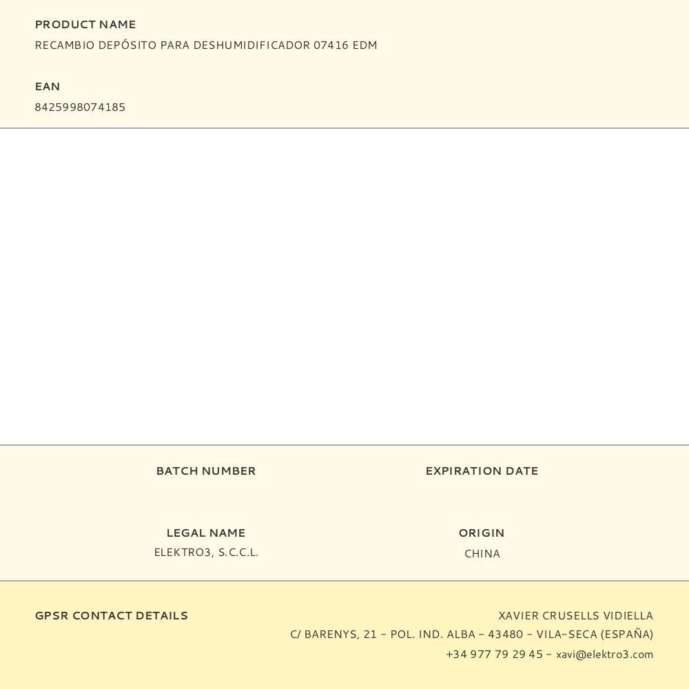 Recambio Depósito Para Deshumidificador 07416 Edm