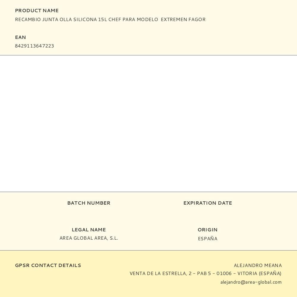 Recambio Junta Olla Silicona 15L Chef Para Modelo Extremen Fagor