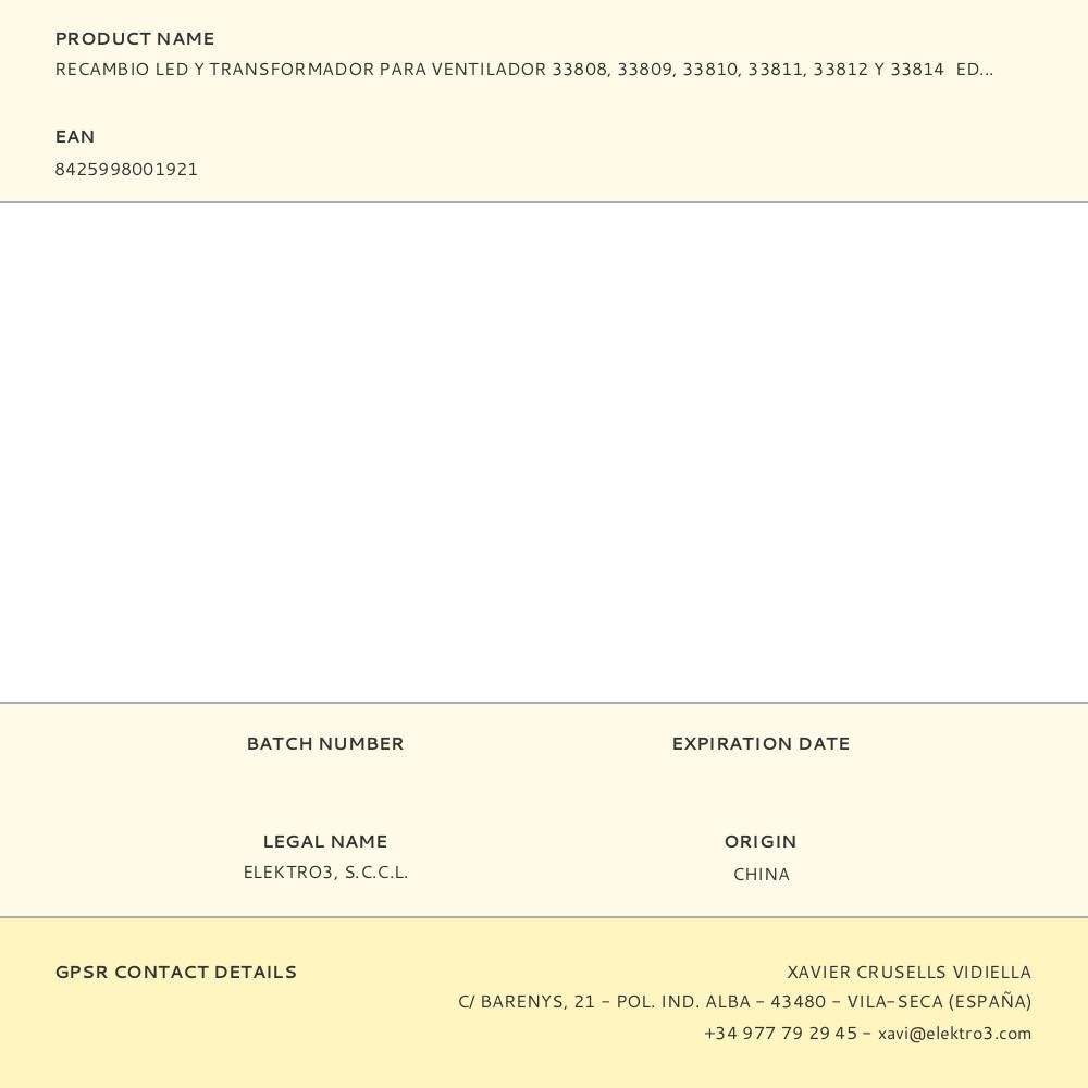 Recambio Led Y Transformador Para Ventilador 33808, 33809, 33810, 33811, 33812 Y 33814 Edm