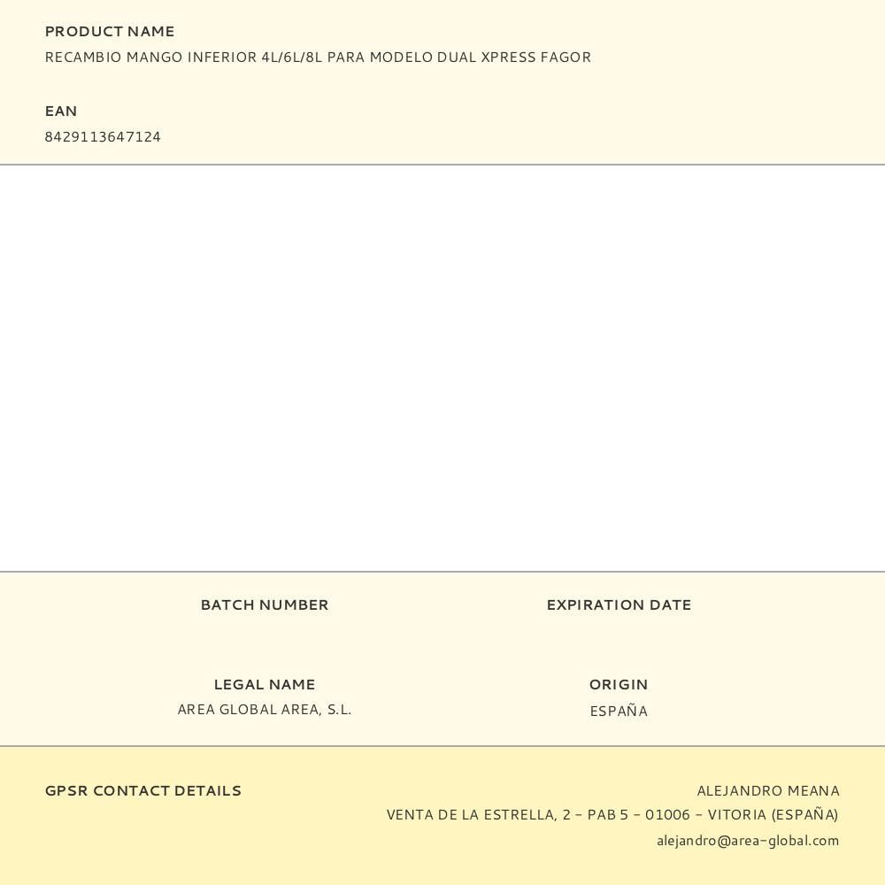 Recambio Mango Inferior 4L/6L/8L Para Modelo Dual Xpress Fagor