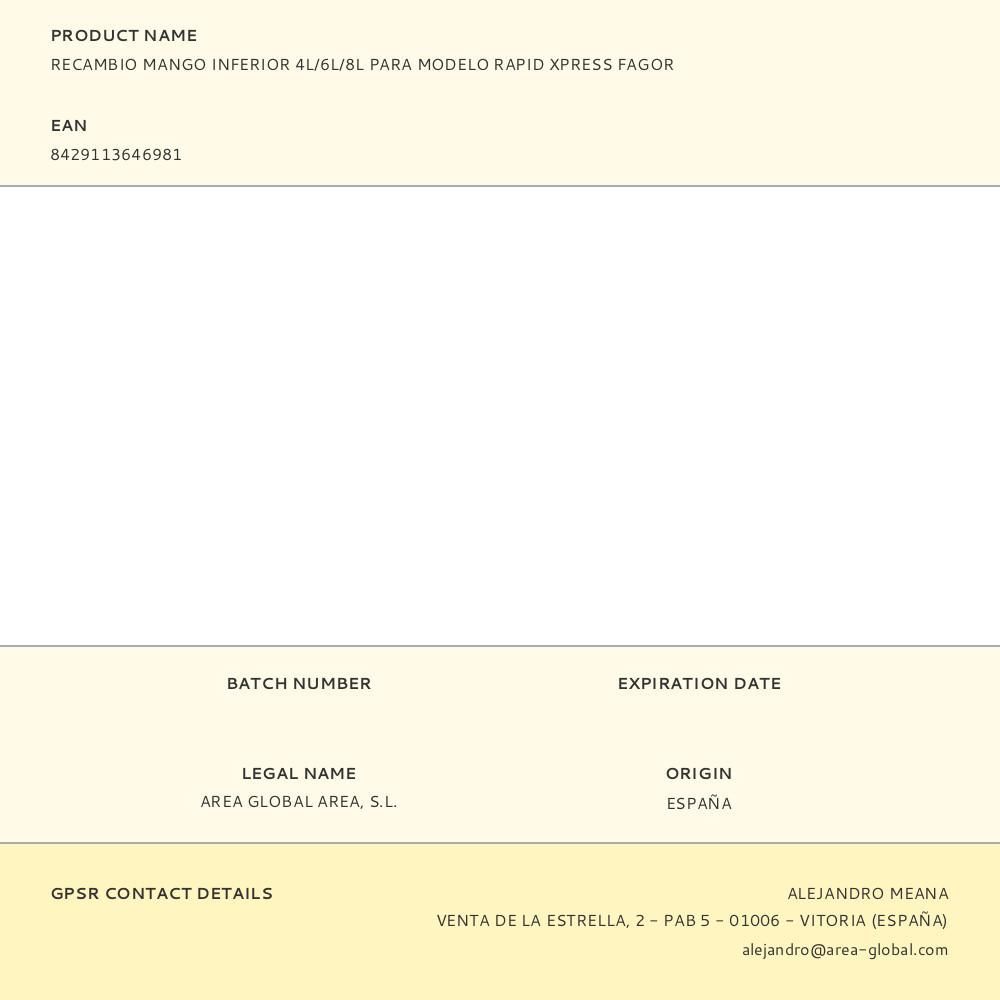 Recambio Mango Inferior 4L/6L/8L Para Modelo Rapid Xpress Fagor