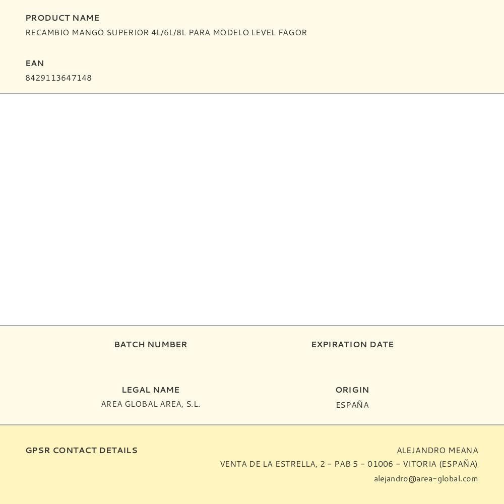 Recambio Mango Superior 4L/6L/8L Para Modelo Level Fagor