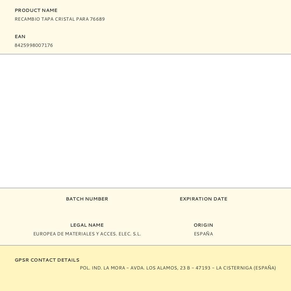 Recambio Tapa Cristal Ø16Cm Para 76689