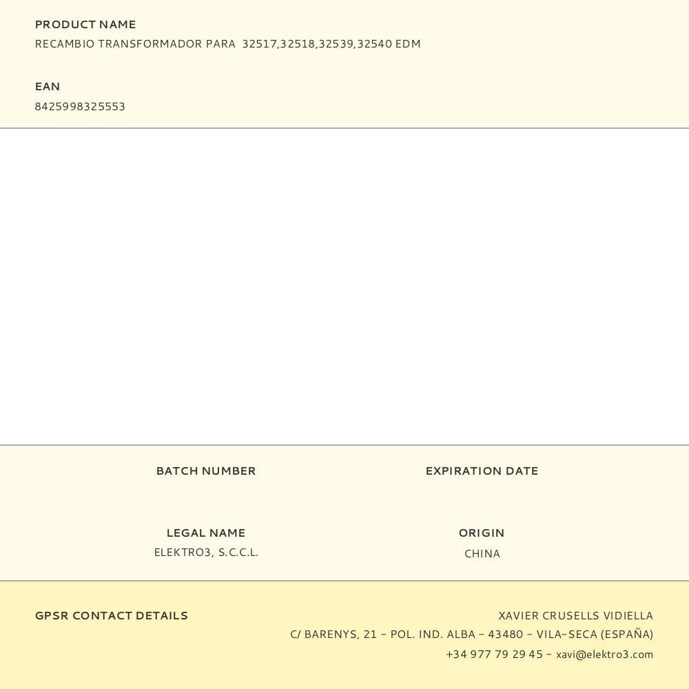 Recambio Transformador Para 32517,32518,32539,32540 Edm