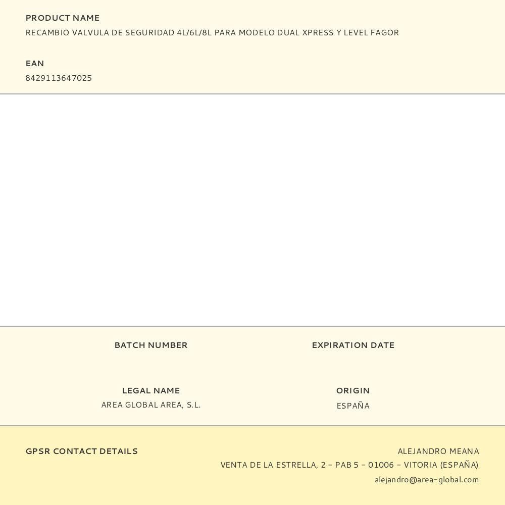 Recambio Valvula De Seguridad 4L/6L/8L Para Modelo Dual Xpress Y Level Fagor