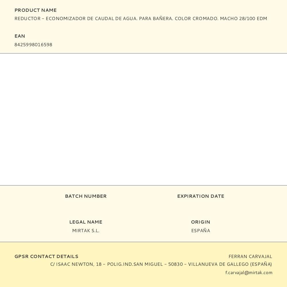 Reductor - Economizador De Caudal De Agua. Para Bañera. Color Cromado. Medida: Macho 28/100 Edm