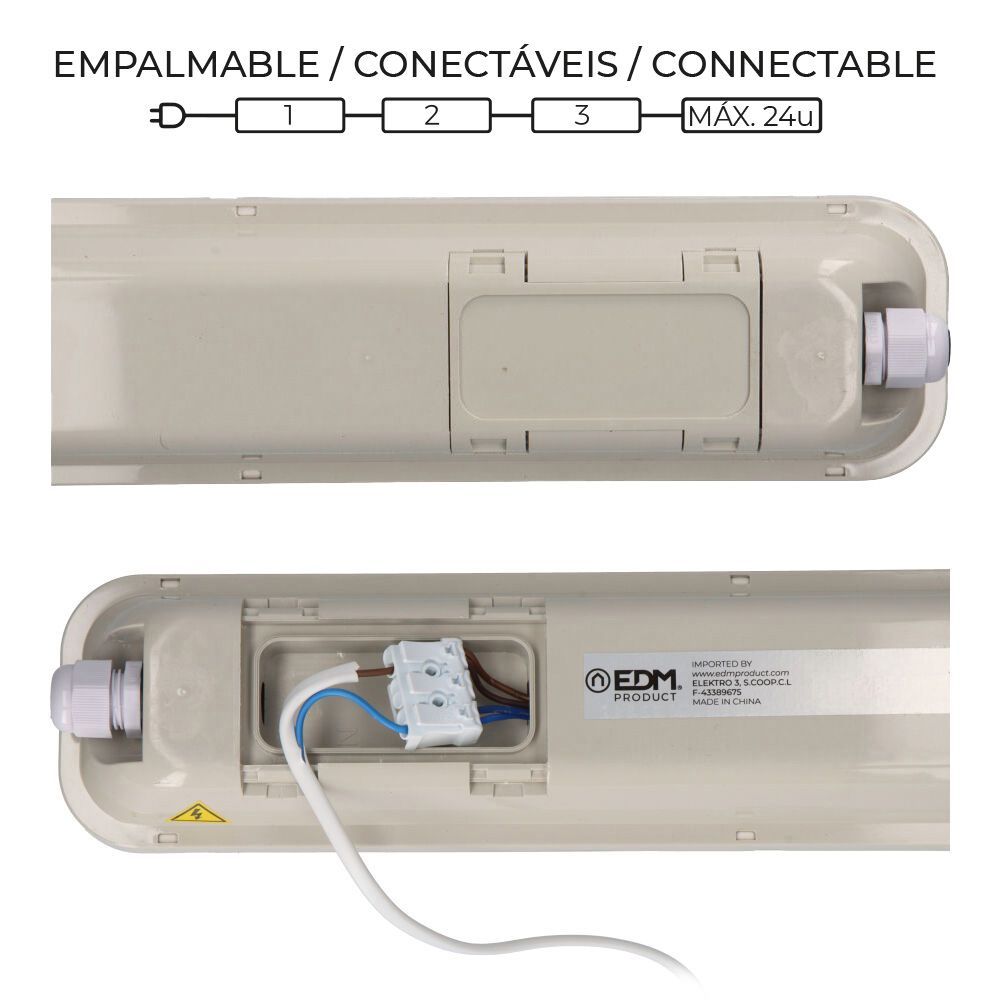 Regleta Estanca Led Ip65 18 W 1990 Lm 6500 K Luz Fria. Conectables Entre Si Máximo 24 Unidades, 120° Con Soportes 220-240 V, 25.000 H Cumple Con Normativa Ce. Ik08. Medidas: 5,9 X 59 X 6,6 Cm (Equivalente 60 Cm)