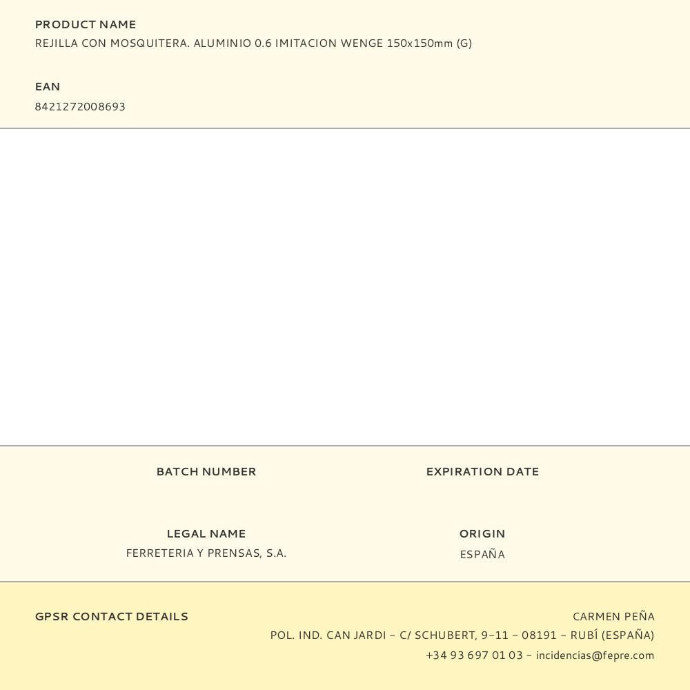 Rejilla Con Mosquitera Aluminio 0.6 Imitacion Wenge 150X150Mm (G) (Ancho/Alto)