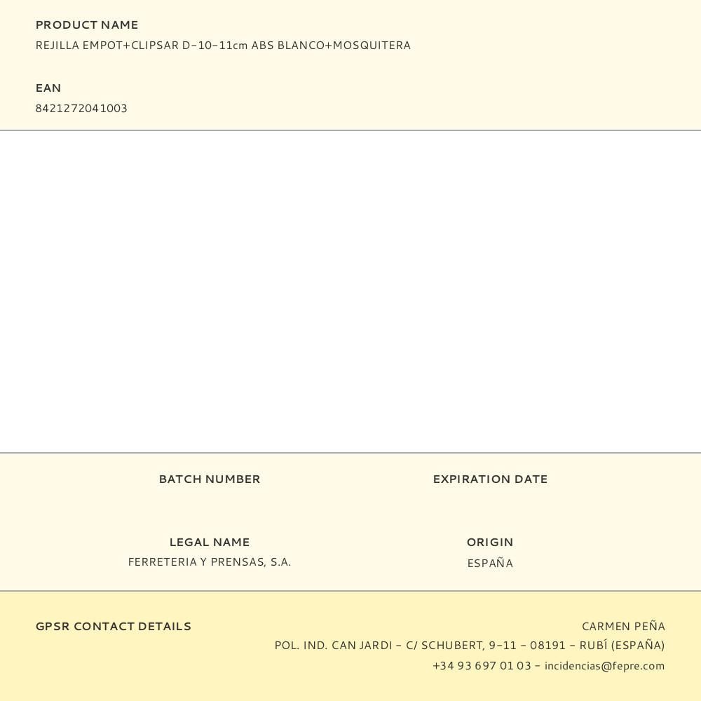 Rejilla Empot+Clipsar D-10-11Cm Abs Blanco+Mosquitera