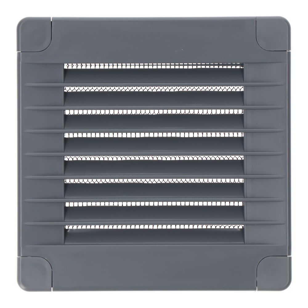 Rejilla Ventilación Cuadrada Con Tapones Y Mosquitera 100X100X7Mm Abs Gris