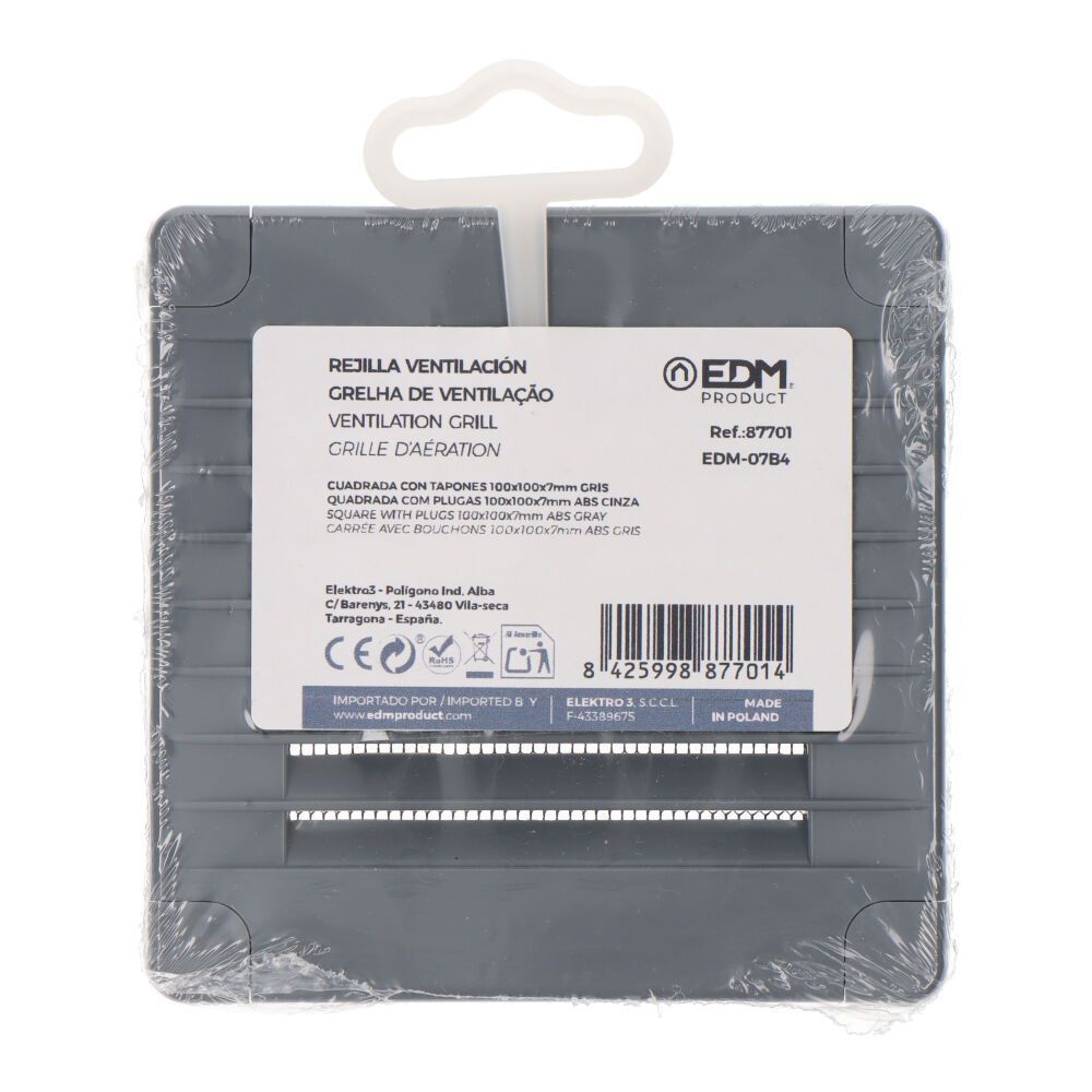 Rejilla Ventilación Cuadrada De Plástico Con Tapones Y Mosquitera, Medida100X100X7Mm Gris