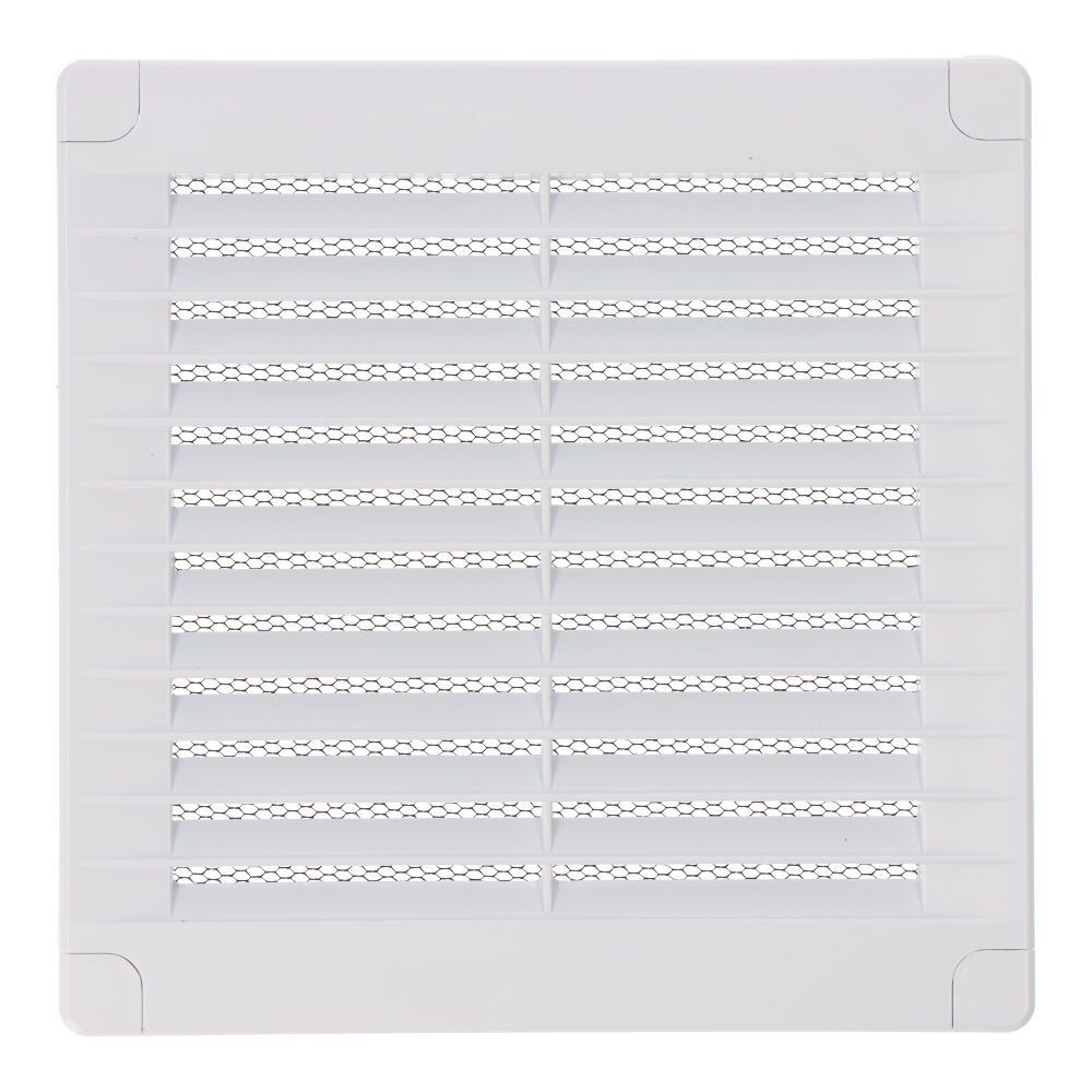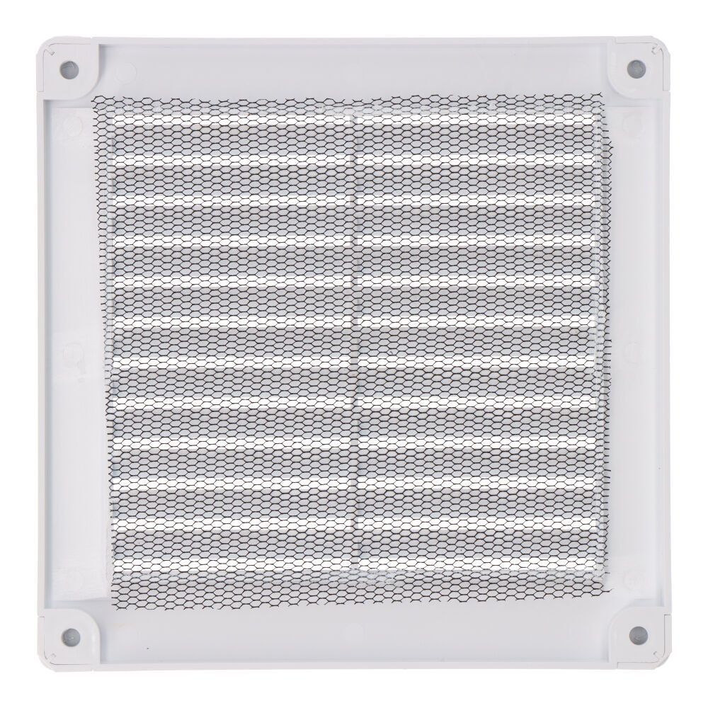 Rejilla Ventilación De Plástico, Cuadrada Con Tapones Y Mosquitera 150X150X7Mm Blanca
