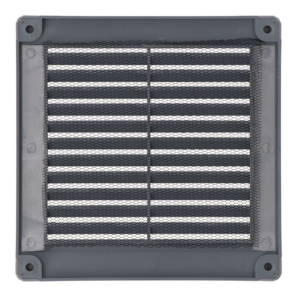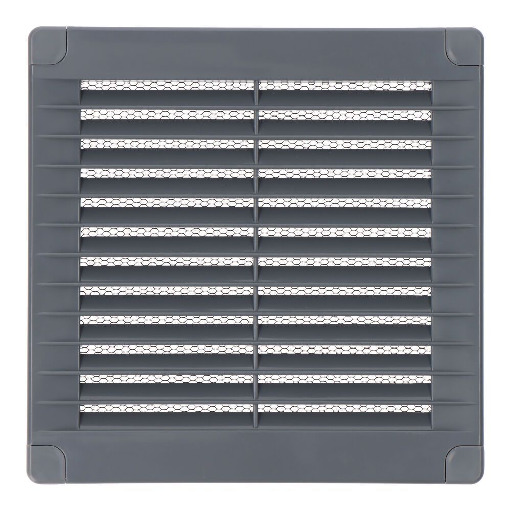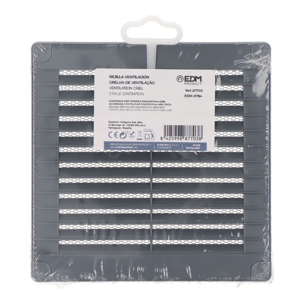 Rejilla Ventilación Cuadrada Con Tapones Y Mosquitera 150X150X7Mm Abs Gris