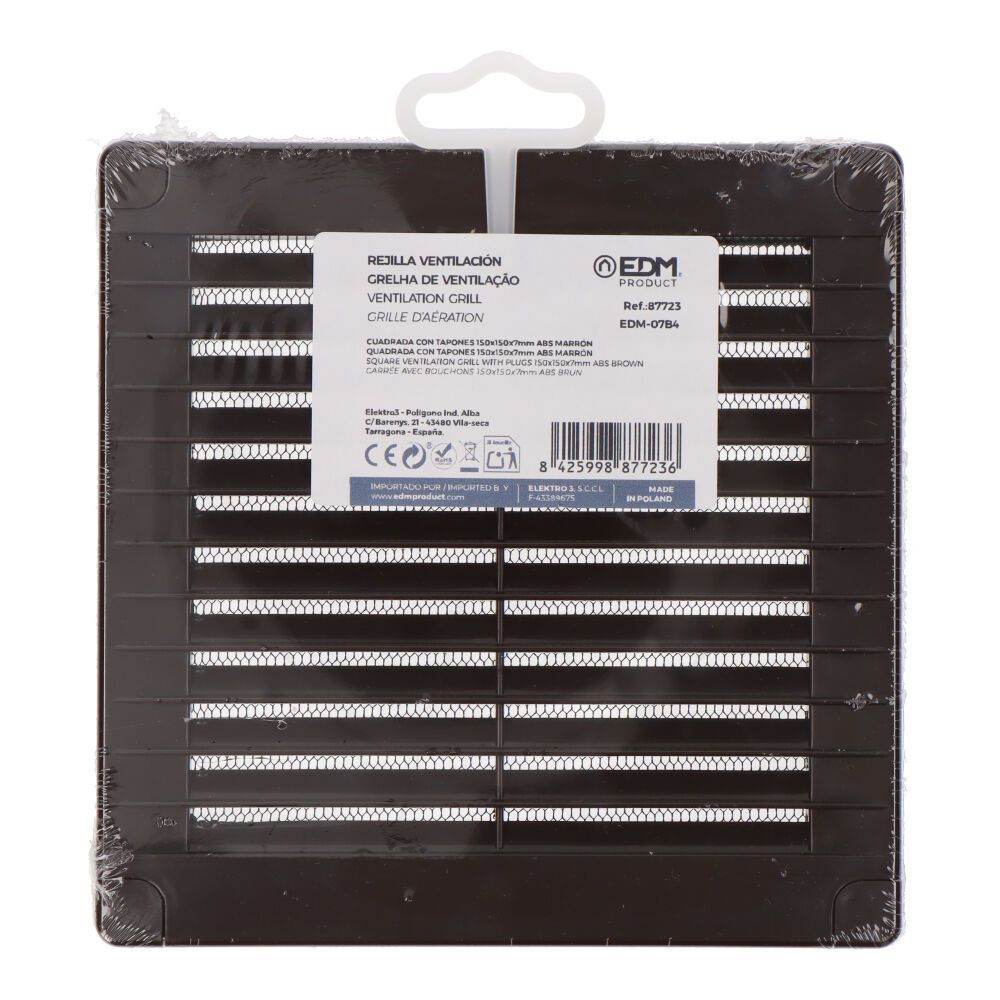 Rejilla Ventilación Cuadrada Con Tapones Y Mosquitera 150X150X7Mm Abs Marrón