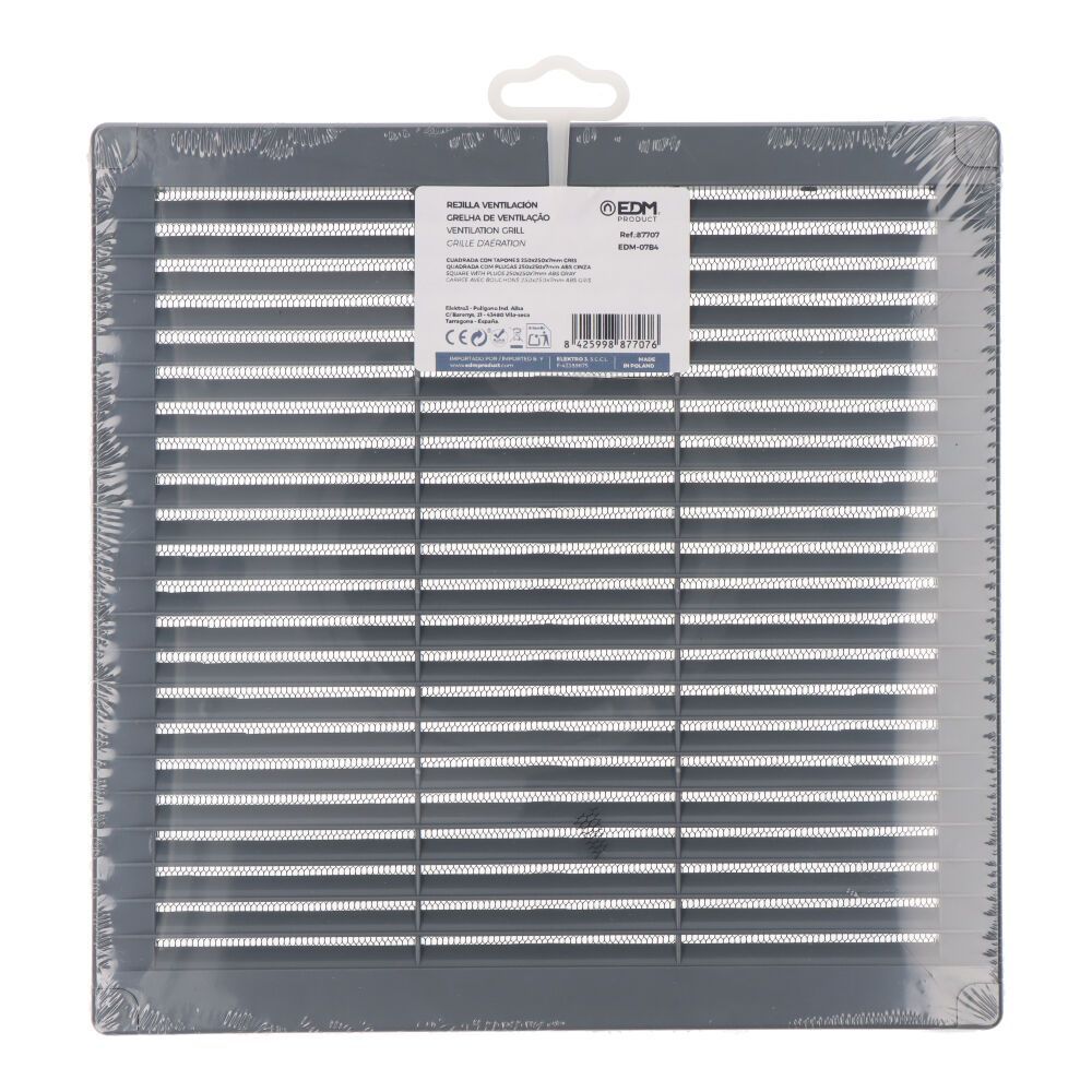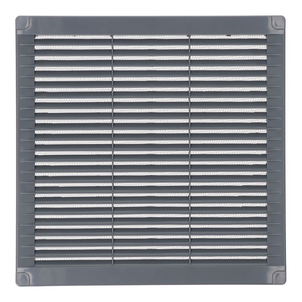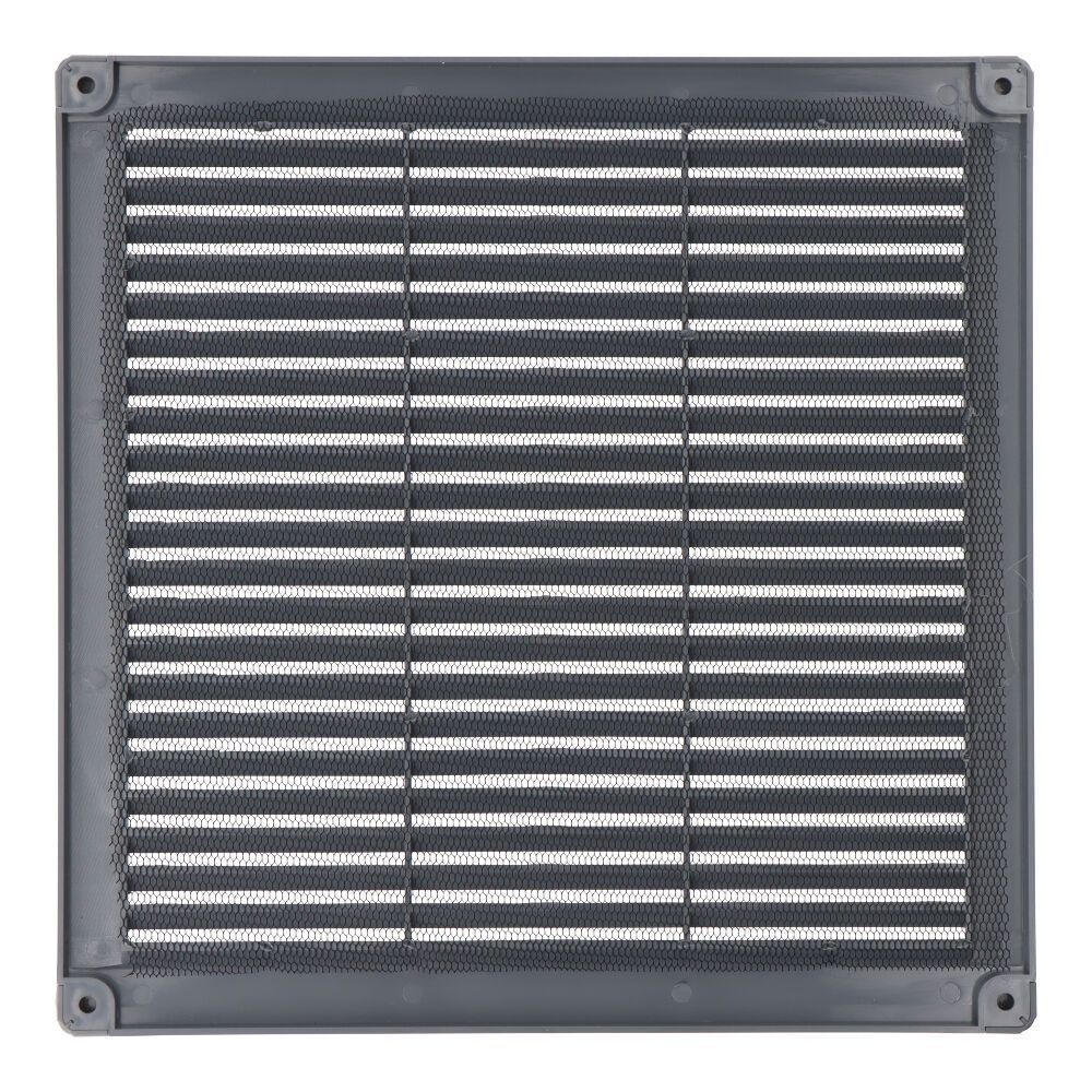 Rejilla Ventilación Cuadrada De Plástico Con Tapones Y Mosquitera 250X250X7Mm Gris
