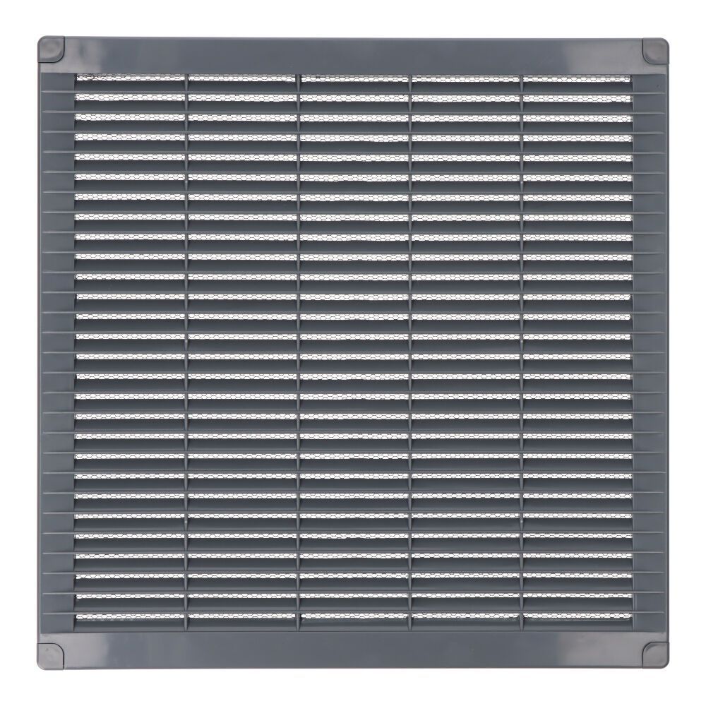 Rejilla Ventilación Cuadrada De Plástico Con Tapones Y Mosquitera 300X300X7Mm Gris