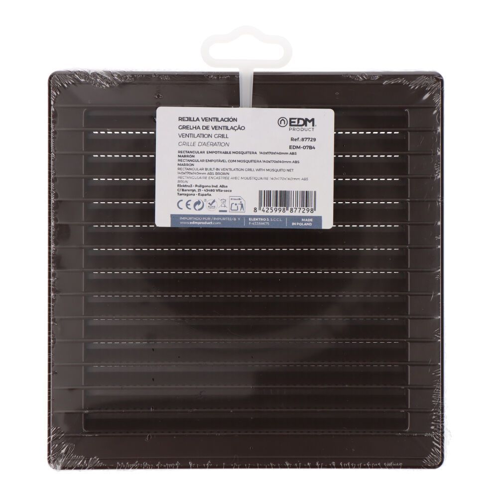 Rejilla Ventilación Cuadrada De Plástico Empotrable Con Mosquitera, Medida Enclavamiento 140 X 140Mm, Medida170 X 170Mm Marrón