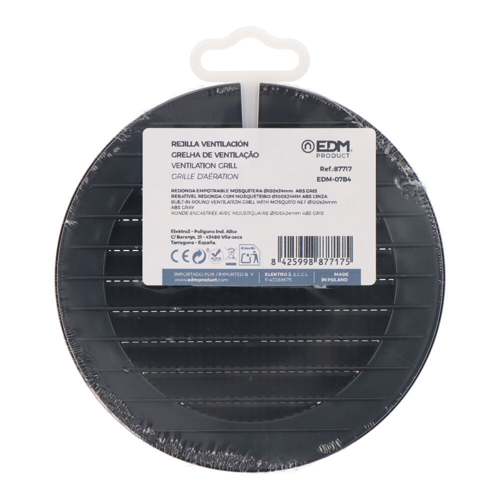 Rejilla Ventilación Redonda Empotrable Con Mosquitera Ø100Mm Abs Gris Antracita
