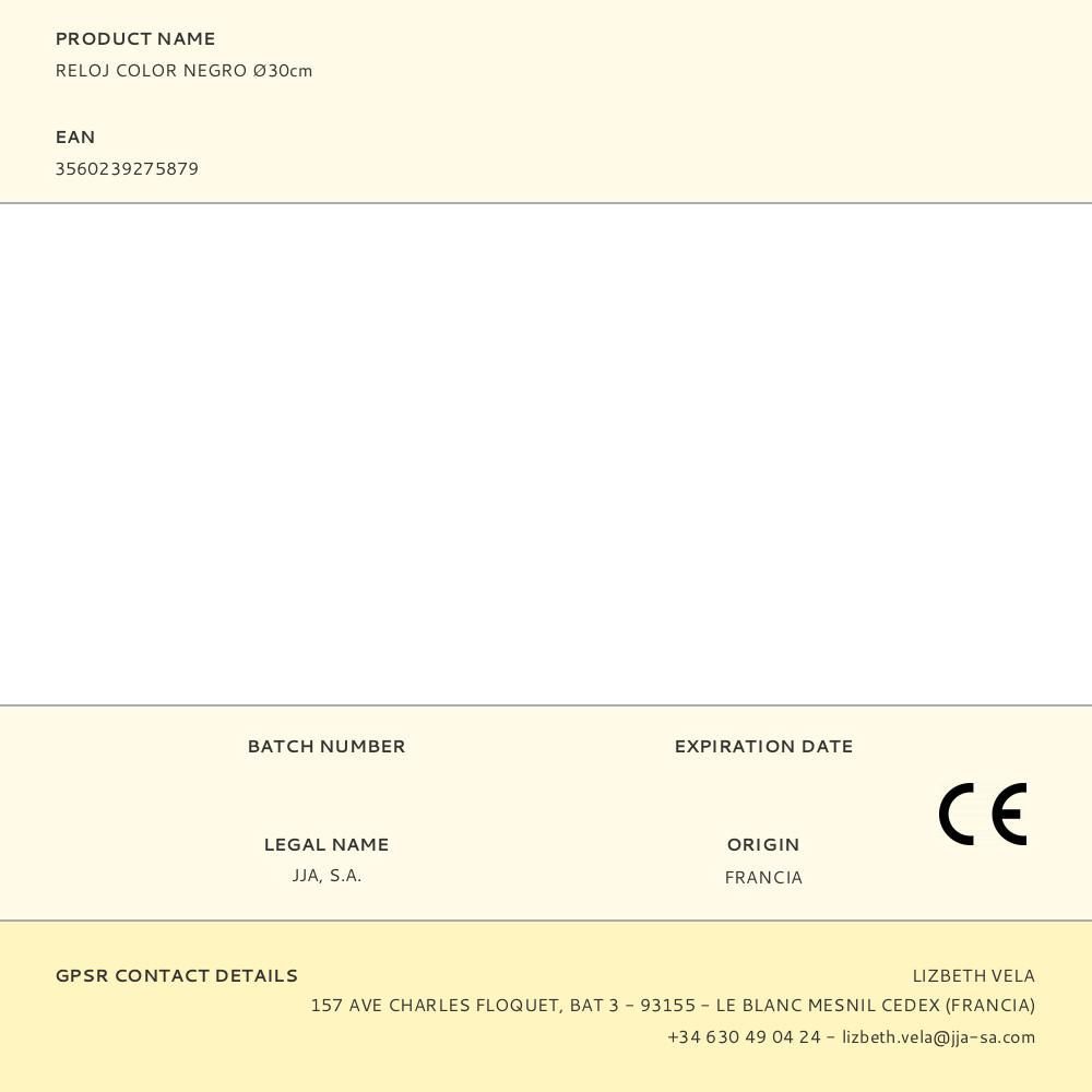 Reloj Color Negro Ø30Cm