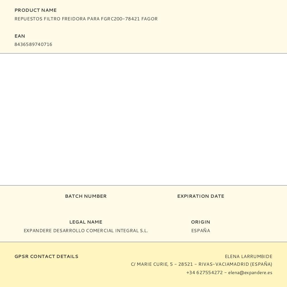 Repuestos Filtro Freidora Para Fgrc200-78421 Fagor