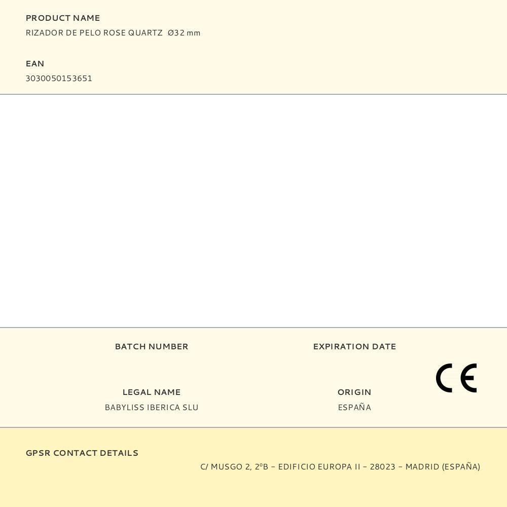 Rizador De Pelo Rose Quartz Ø32Mm Led Babyliss. Recubrimiento De Cerámica Con Cuarzo. Sistema De Calentamiento Advanced Ceramic Technologi. Pinza Larga. Calentamiento Instantáneo. Apagado Automático. Guante Y Alfombrilla Térmica. Punta De Agarre Frío. Cable Giratorio De 2,5M. 6 Ajustes De Calor De 160°C A 210°C