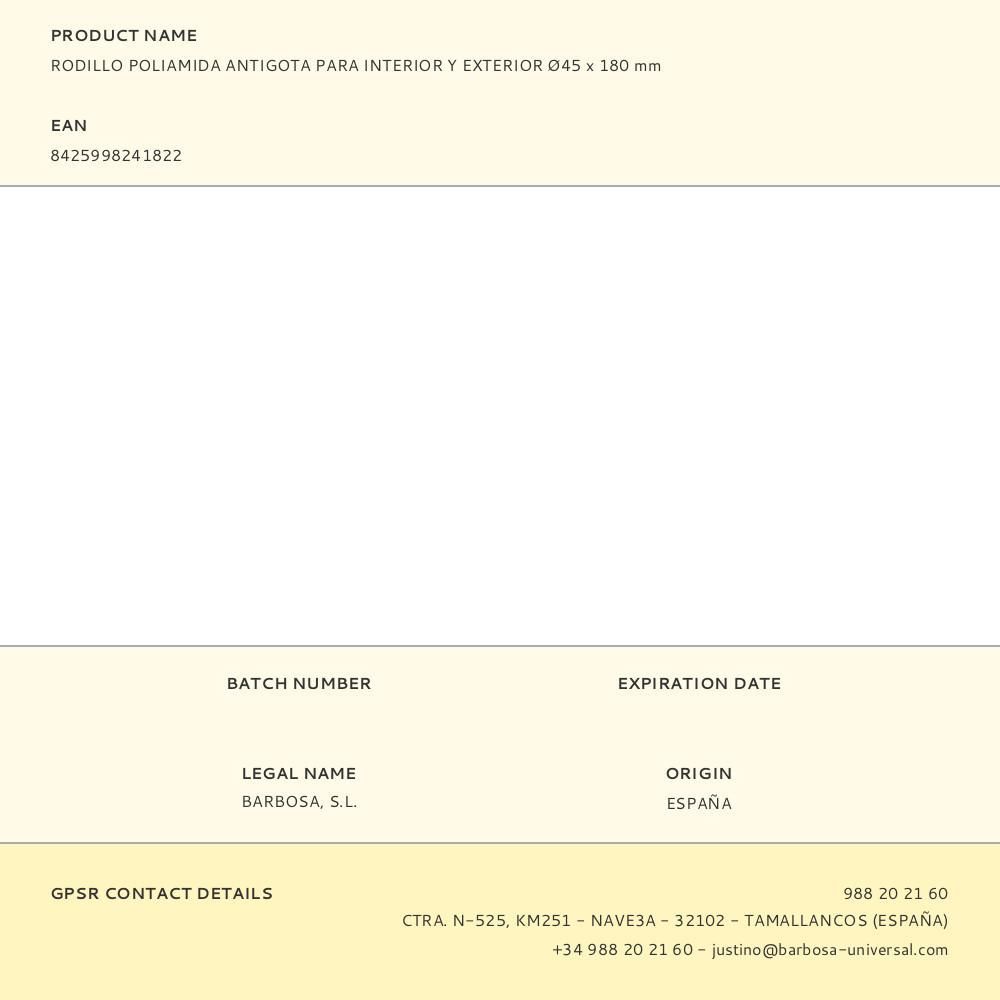 Rodillo Poliamida Antigota Para Interior Y Exterior Ø45 X 180 Mm