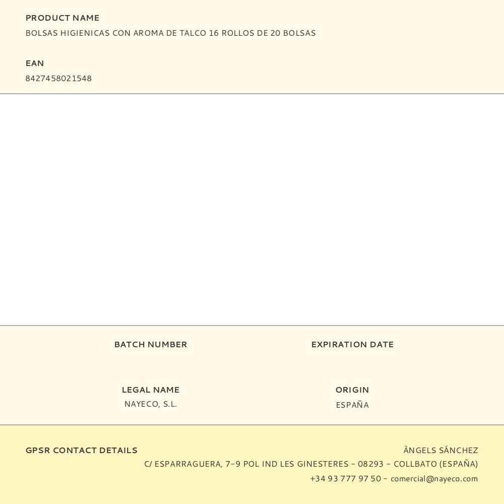 Rollo De 20 Bolsas Higiénicas Con Aroma De Talco Colores Surtidos 32 X 22 Cm, 16 Uds