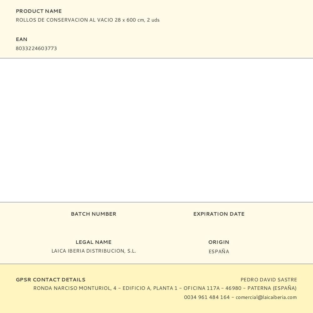 Set 2 Rollos De Conservacion Al Vacio 28X600Cm. No Contienen Bisfenol A. Laica
