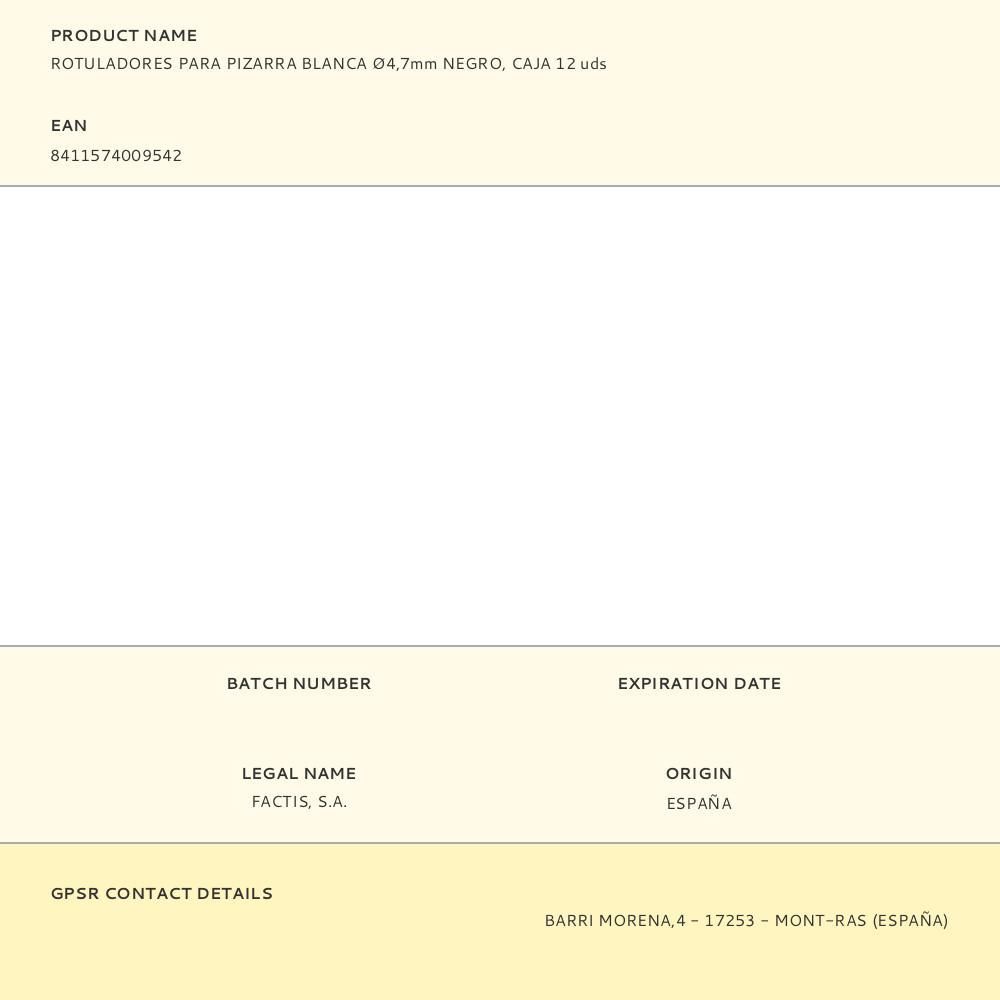Rotuladores Para Pizarra Blanca Ø4,7Mm Negro, Caja 12 Uds