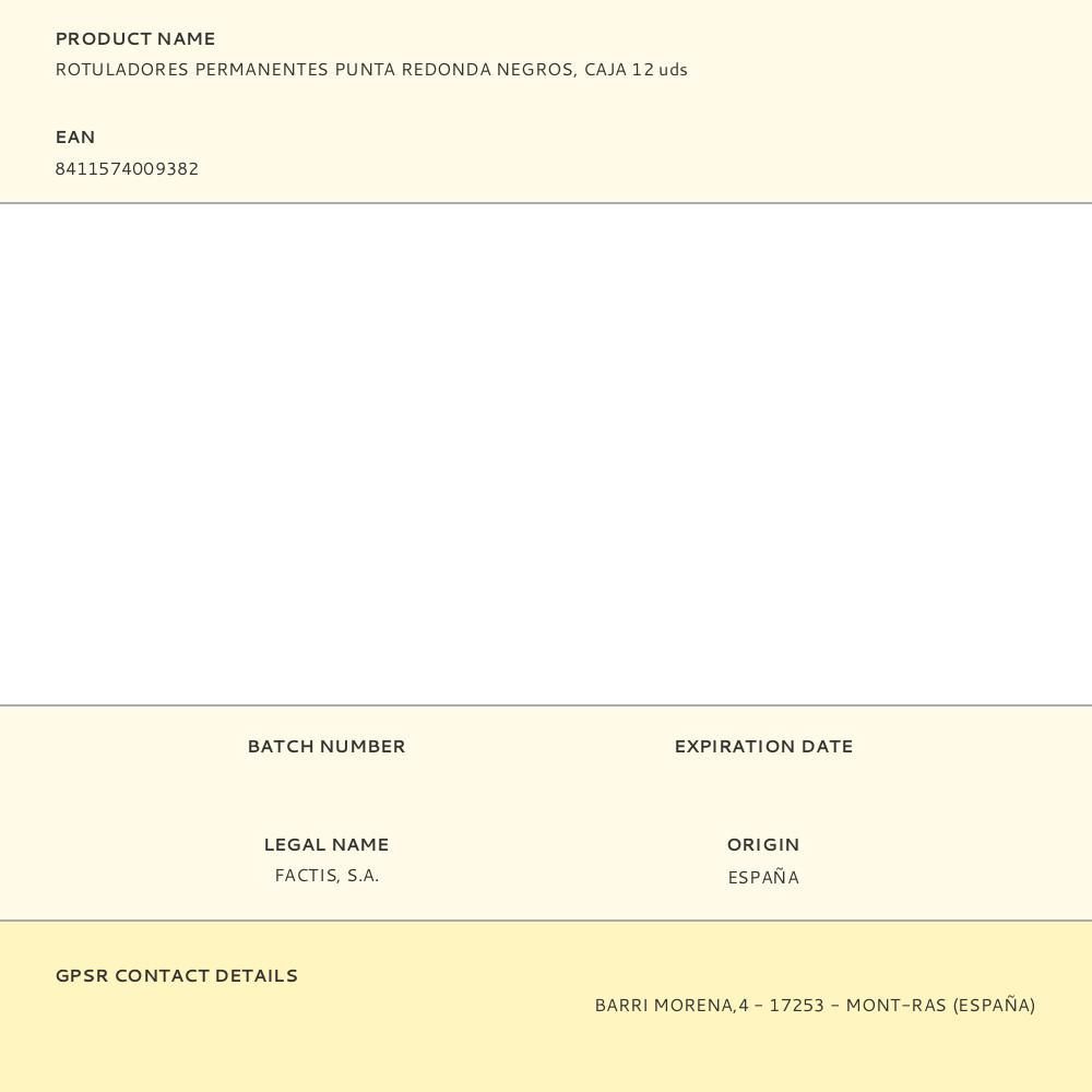 Pack Con 12 Rotuladores Negros Permanentes. Punta Redonda Milan. Rotuladores Permanentes Color Negro. Rotulador Permanente Sobre La Mayoría De Materiales. Tinta A Base De Alcohol. Punta Redonda Ø4Mm. Recomendamos Tapar Después De Usar Y Almacenar En Posición Horizontal.