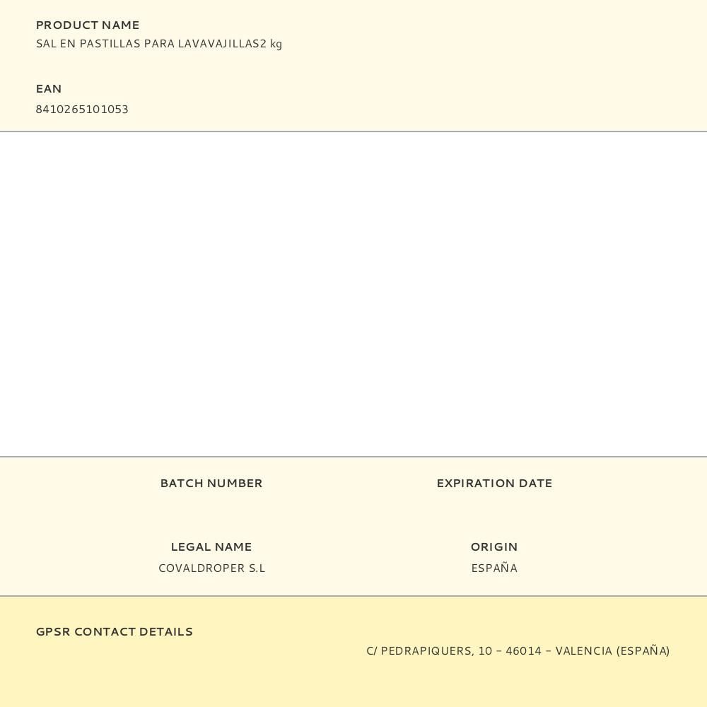 Sal En Pastillas Para Lavavajillas2 Kg