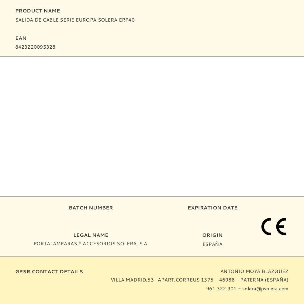 Salida De Cable 3X2,5Mm². Blanco, 83X81Mm Serie Europa Solera Erp40