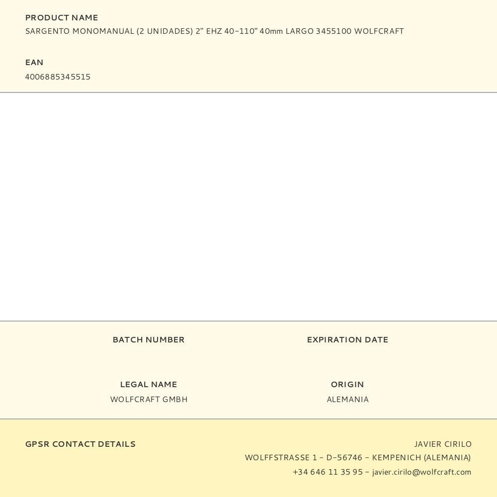 Sargento Monomanual 2 Pulg Ehz 40-110 Pulg Largo 40 Mm, 2 Uds