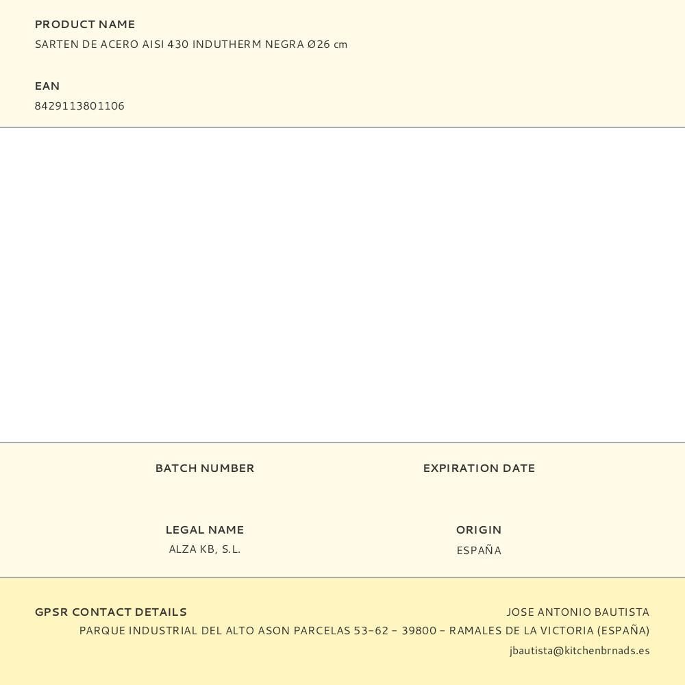 Sartén De Acero Aisi 430 Indutherm Negra Ø26Cm