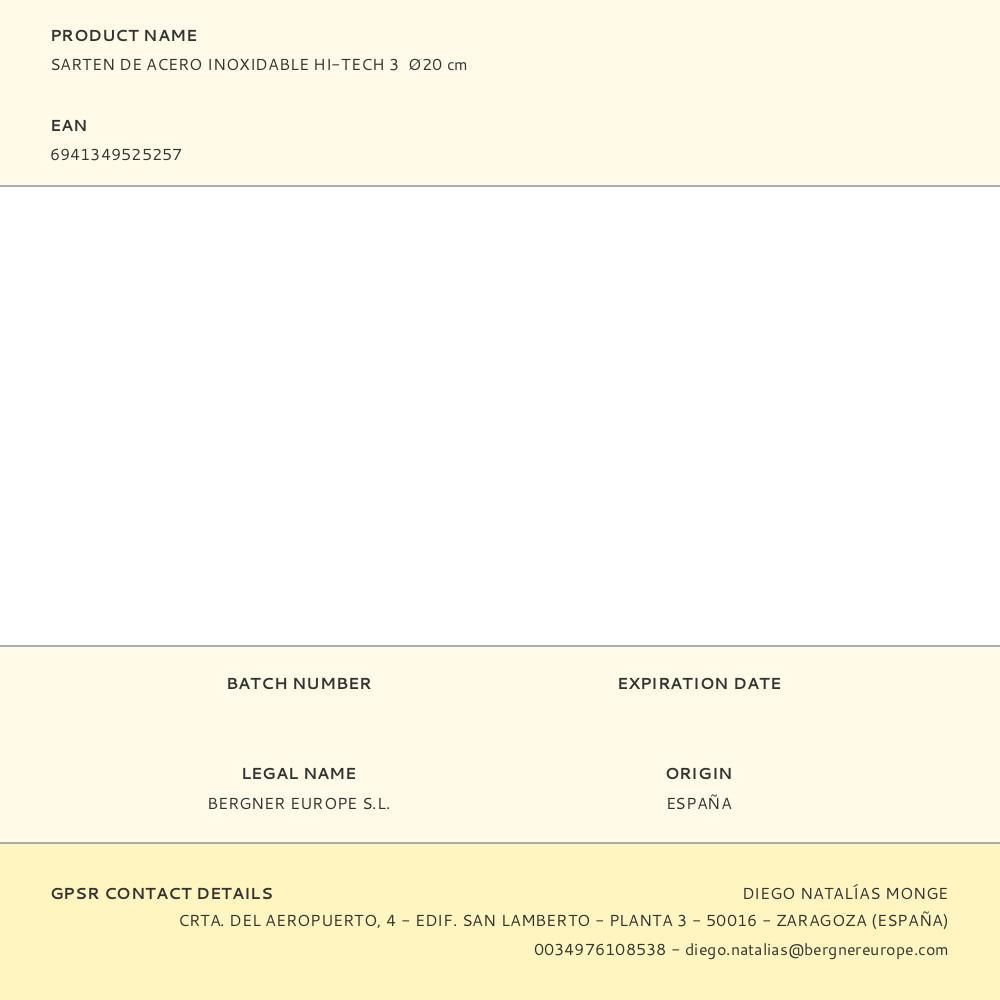 Sartén Ø20X4,2Cm De Acero Inoxidable Hi-Tech 3 Bgmp-1630 Masterpro. Esta Sartén Esta Fabricada En Acero Inoxidable 18/10 Con Un Núcleo De Aluminio. Con Esta Combinación De Materiales Conseguimos Que La Temperatura Se Distribuya De Forma Uniforme Y Puedas Cocinar Tus Alimentos Homogéneamente. En Su Parte Exterior, Esta Sartén Tiene Un Revestimiento Antiadherente, Diseñado Para Resistir El Paso Del Tiempo. La Tecnología Pallatium Presente En Esta Sartén Utiliza Tres Capas Diferentes Que Refuerzan El Lado Más Superficial Y Evitan Que Se Raye O Deteriore. Ofrece Unas Propiedades De Dureza Y Resistencia Extraordinarias Que Hacen De Esta Sartén Antiadherente Sea La Aliada Perfecto Para El Uso Diario. Además, La Textura De Panel De Abeja Ayuda A Evitar El Deterioro Progresivo, Incluso Trabajando Con Utensilios Metálicos. Otro Motivo Por El Que Te Encantará Cocinar Con Las Sarténes Hi-Tech3 Es Su Capacidad Para Conducir El Calor Rápidamente. Con Su Base De 5Mm Ultra Turbo De Aluminio Encapsulado Es Capaz De Calentarse Hasta Tres Veces Más Rápido Y Ofrece Un Rendimiento Perfecto En Cocinas De Inducción, De Gas, Vitrocerámicas, Placas Eléctricas Y Fuegos Halógenos.El Diseño Profesional También Se Nota En Los Mangos Y Asas. Están Realizados En Acero Inoxidable Y Con Un Diseño Ergonómico. Para Evitar Que El Calor Pase, Llevan Un Tratamiento Stay Cool Que Bloquea La Transmisión De Temperatura A Las Zonas Que Entran En Contacto Con Tus Manos.