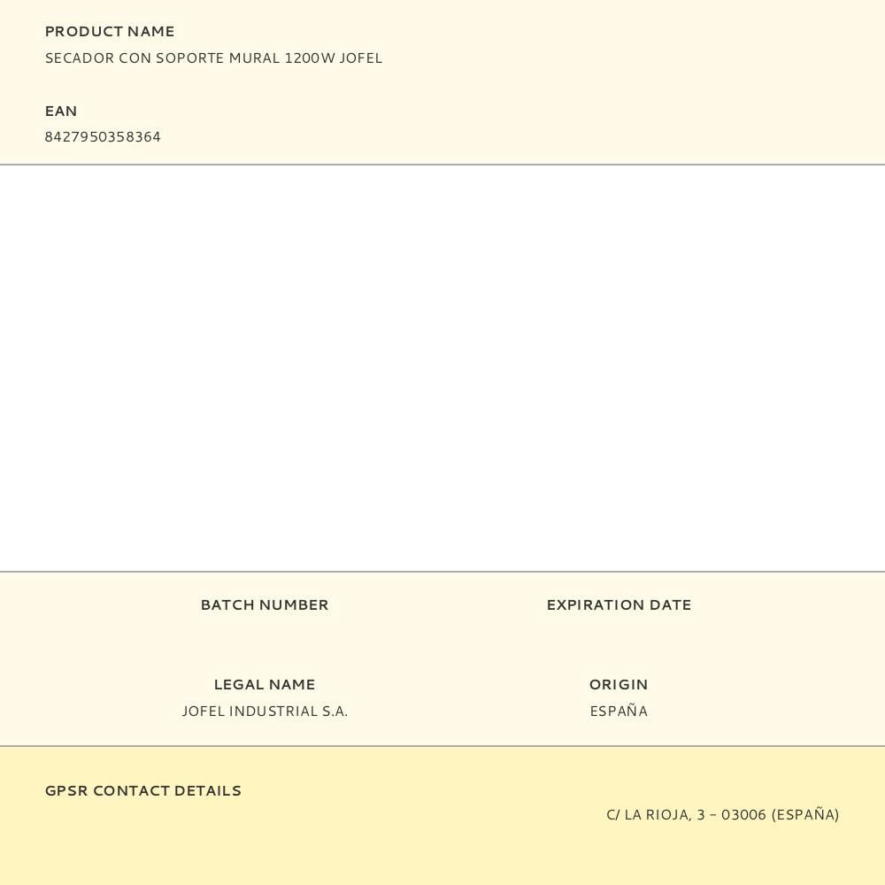 Más informaciónColor , Blanco , Potencia , 1.800 W , Aislamiento el u00e9ctrico , Clase II , Tipo , Secador con soporte mural , Material , Abs de alta calidad y resistencia , Tensi u00f3n , 230 V AC - 50 Hz , Velocidad salida del aire , 55 Km h , Decibelios , 68 dB , Temperatura aire , 62 u00b0C , Accesorios , Incluye 3 tacos y 3 tornillos , Interruptor encendido y apagado , S u00ed, en base , Ionizador , S u00ed, para un cabello brillante y sin encrespado , Accesorios , Boquilla fina extraible , Cable , Extensible hasta 1,5 m , Base de enchufe para afeitadora depiladora , M u00e1x. 25 W , Referencia fabricante , AB45600
