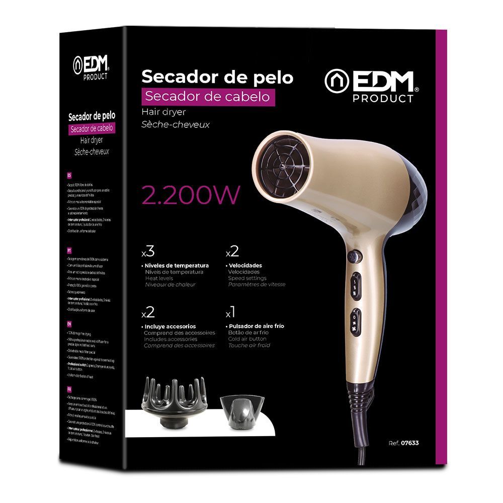 Secador De Cabello- Potencia: 1800-2200W. Incluye Difusor Para Un Estilo Preciso Y Unos Rizos Definidos. Secado 100% Libre De Daños. Filtro De Malla Desmontable Especial. Interruptor Profesional: 2 Velocidades. 3 Niveles De Temperatura. Pulsador De Aire Frio. Distribucion Uniforme Del Calor. Dimensiones: 9X21X28.5Cm (Ancho/Fondo/Alto). 220-240V. 50Hz Edm