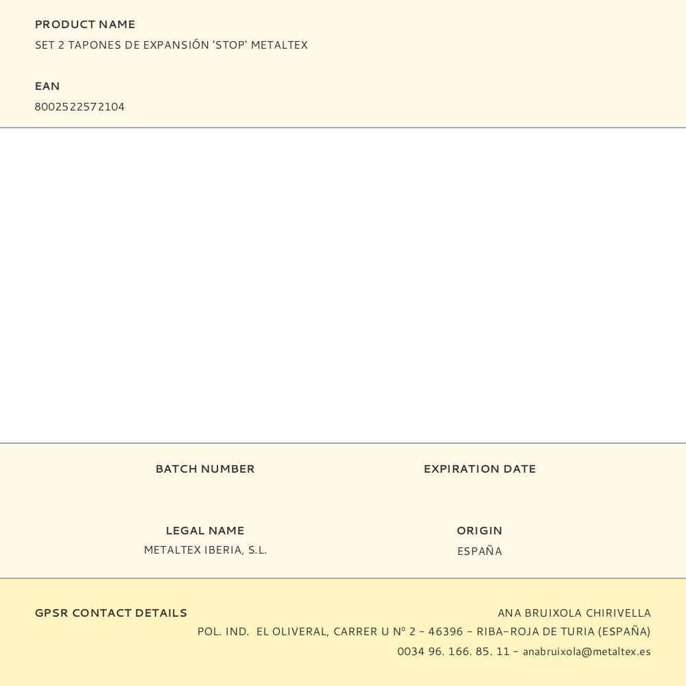 Set 2 Tapones De Expansión Stop. Leva De Acero Inoxidable. Con Descapsulador