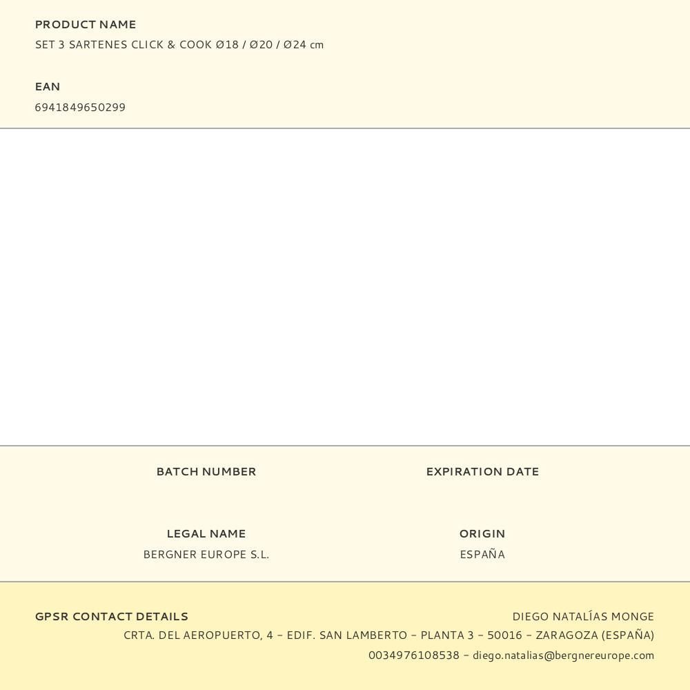 Set 3 Sartenes Click & Cook Ø18 / Ø20 / Ø24 Cm
