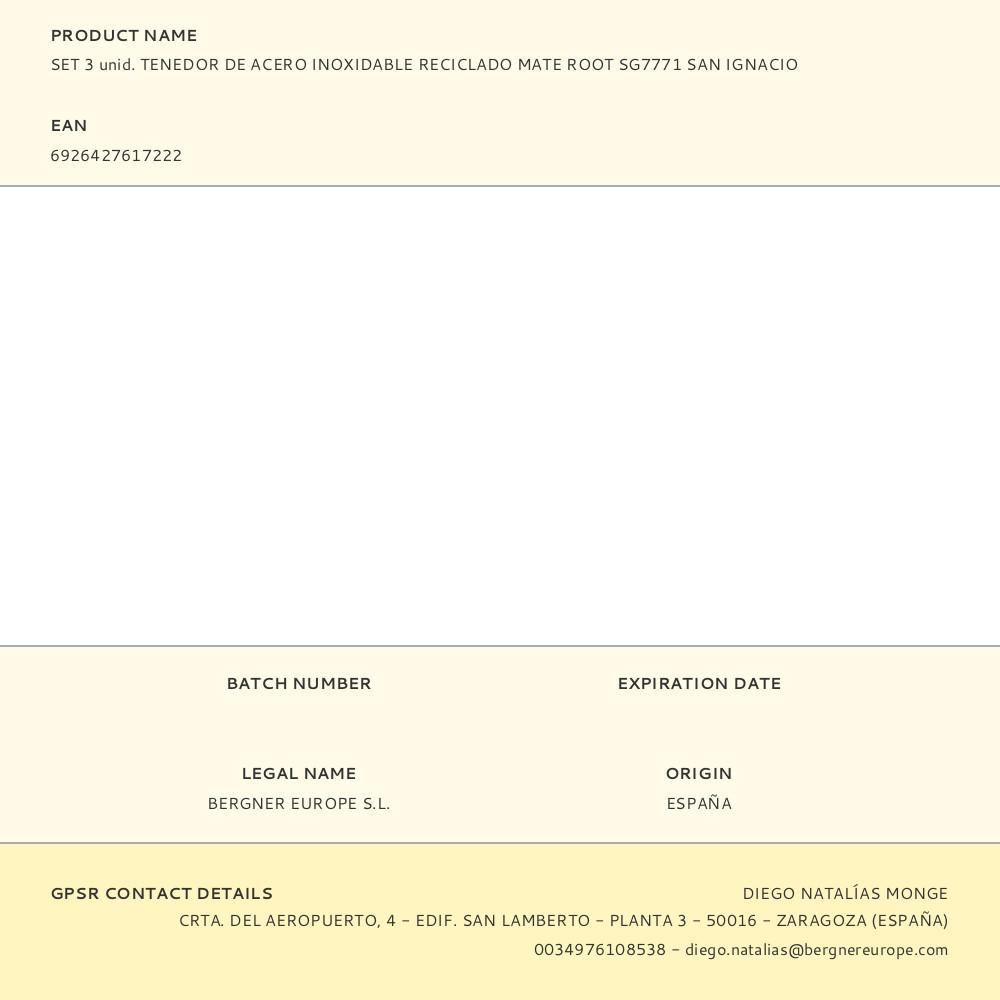 Tenedor De Acero Inoxidable Reciclado Mate Root, Blister 3 Uds