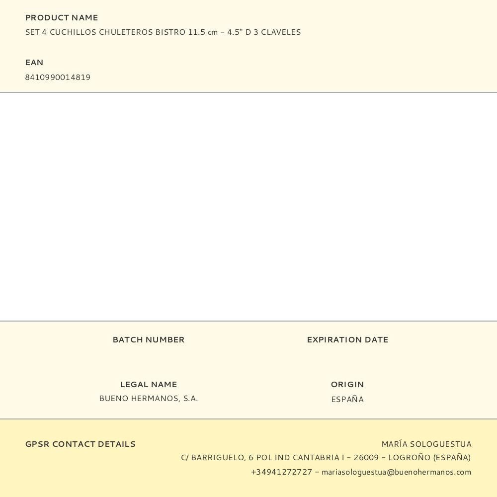 Cuchillos Chuleteros Bistro 11,5 Cm 4 Uds