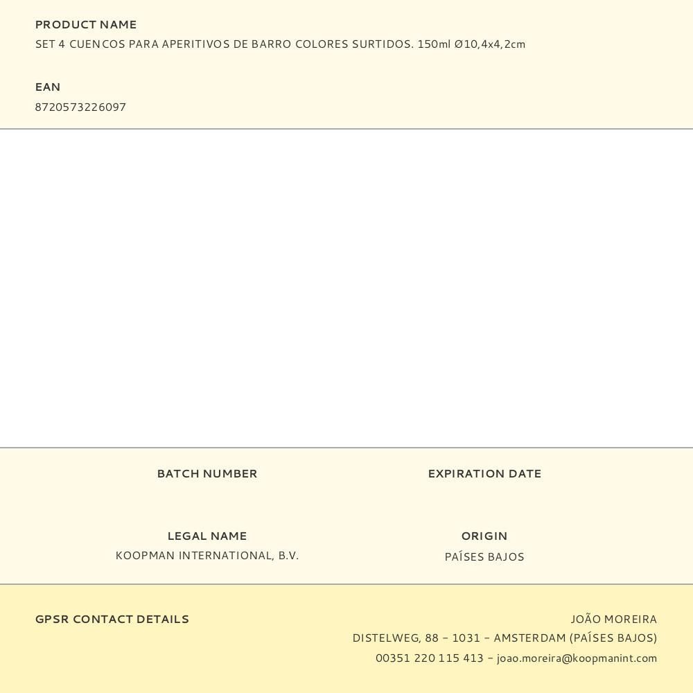 Set 4 Cuencos Para Aperitivos De Barro Colores Surtidos 150 Ml Dimensiones: Ø10,4 X 4,2 Cm. Fondo Esmaltado En Color Azul, Morado, Verde Y Amarillo. Apilables, Fondo Esmaltado, Apto Para Microondas, Lavavajillas Y Horno (Máx: 230°C)