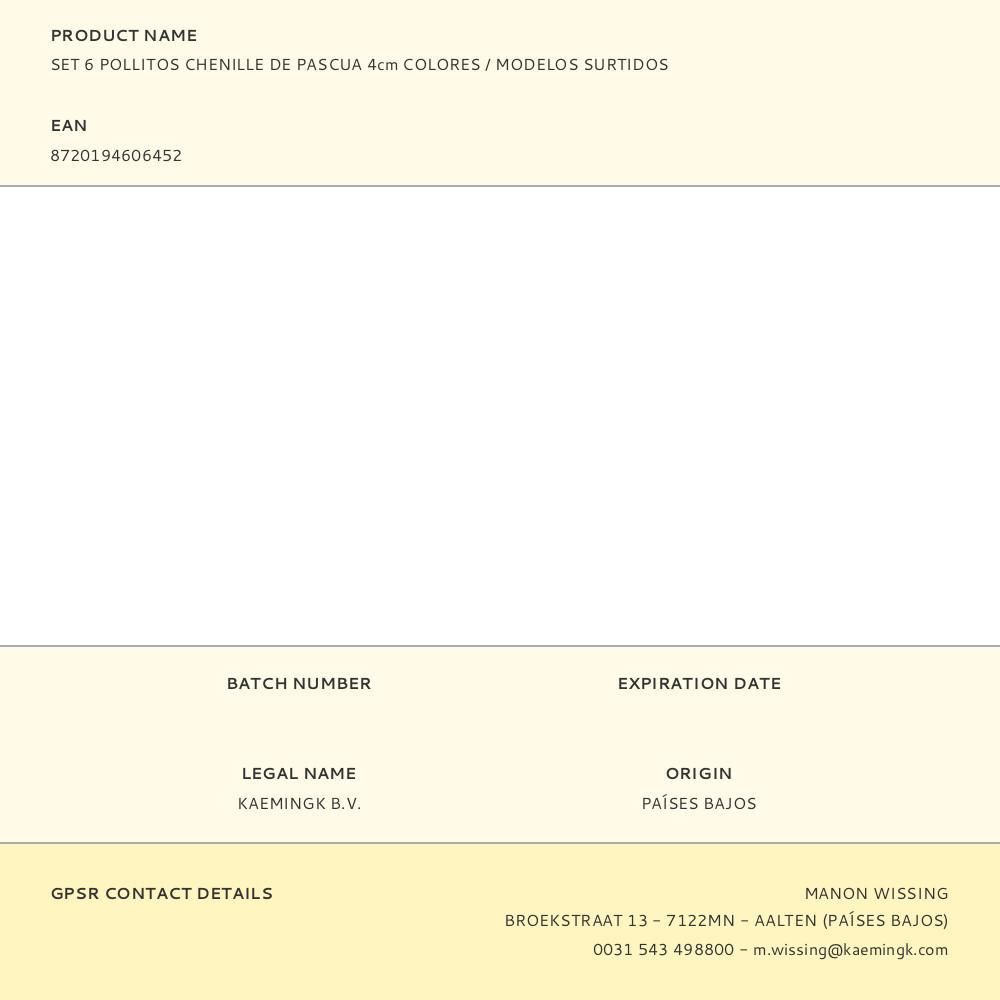 Set 6 Pollitos Chenille De Pascua Dimensiones: 4Cm (Altura) Colores / Modelos Surtidos
