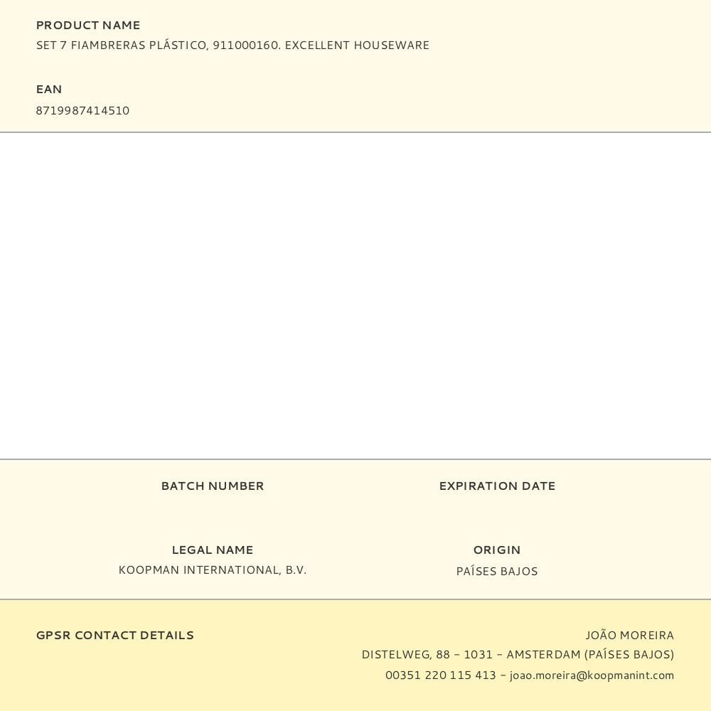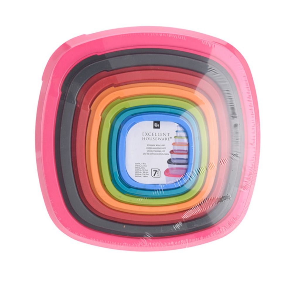 Set 7 Fiambreras De Plástico, Tapa De Colores, Capacidad: 225 Ml, 375 Ml, 650 Ml, 1125 Ml, 1900 Ml, 3200 Ml, 5500 Ml, Apto Para Microondas Máx. 5 Min. 850 W, 120 °C Lavavajillas Y Congelador, No Apto Para Horno