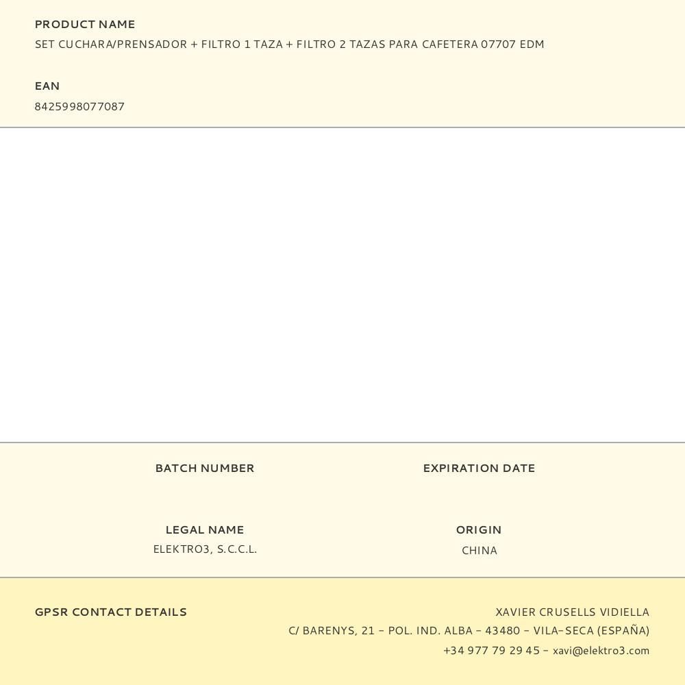 Set Cuchara/Prensador + Filtro 1 Taza + Filtro 2 Tazas Para Cafetera 07707 Edm