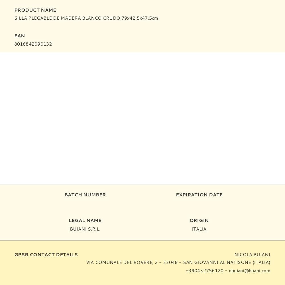 Silla Plegable De Madera Natural Color Blanco Crudo 79X42,5X47,5Cm. Estructura, Asiento Y Respaldo En Madera Maciza De Haya Color Blanco. Herrajes En Acero Tratado. Adhesivo Y Pinturas Hidrosolubles. Acabado Pintado. Cumple Normativa En 12520:2015. Uso Domestico. Medidas Silla Plegada 87X7Cm.