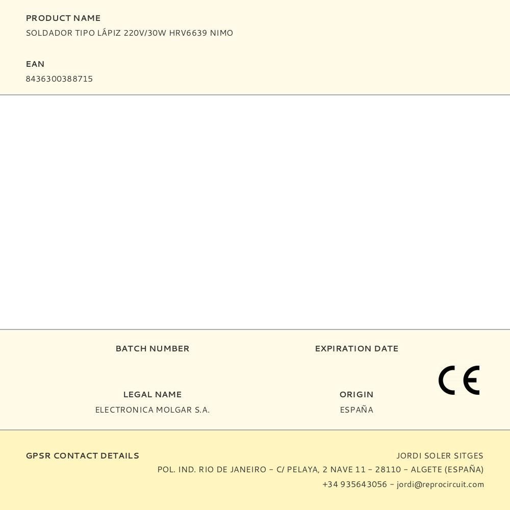 Soldador Tipo Lápiz 220V/30W Apto Para La Soldadura Sin Plomo. Soporte No Incluido. Soldador Autónomo, Punta Redonda 1,5Mm, Resistencia Metálica 30W, Tamaño 220Mm, Temp. Máxima 385°+/-10%