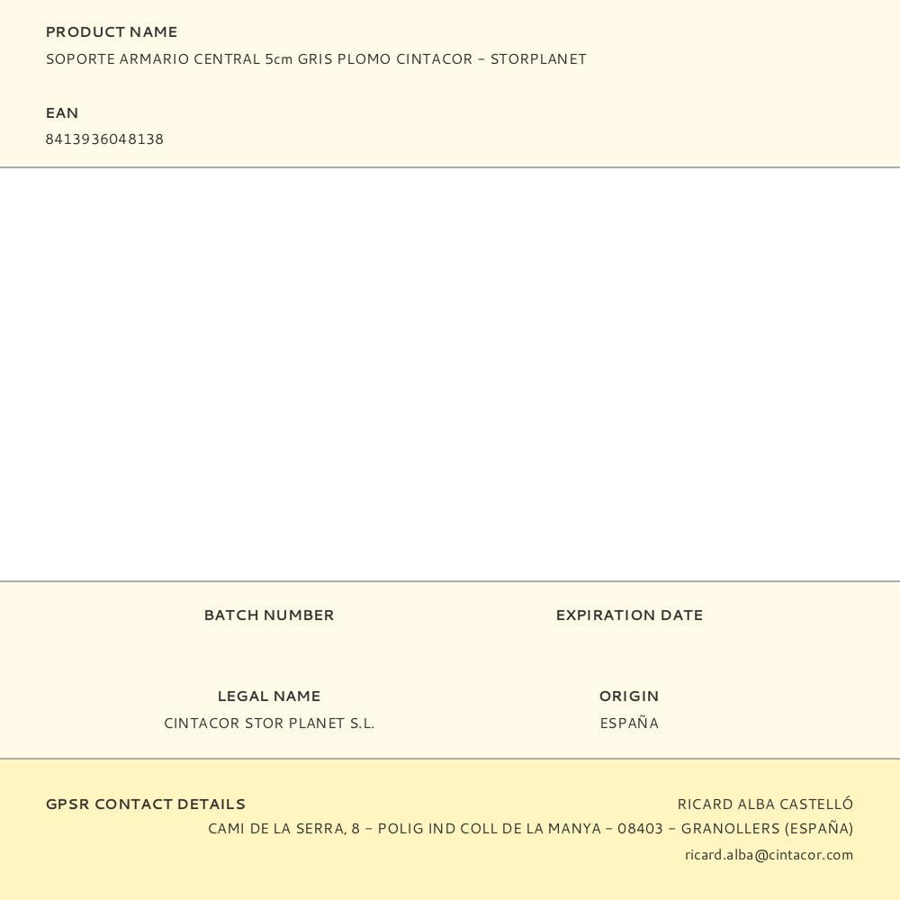 Soporte Armario Central 5Cm Gris Plomo Cintacor - Storplanet